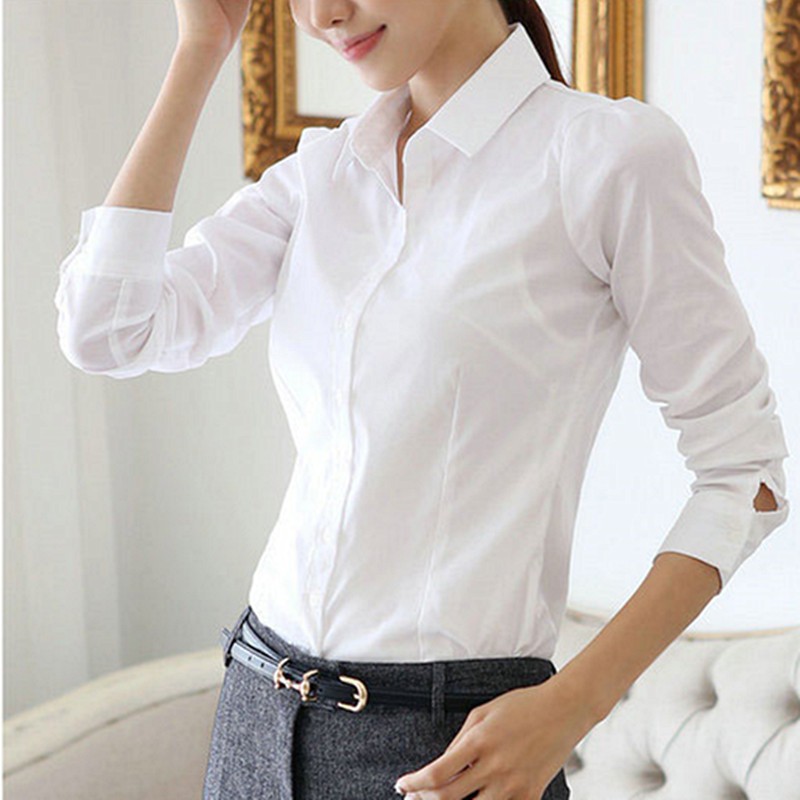 Women shirts long sleeved white color shirt office lady Sumber : shopee.sg